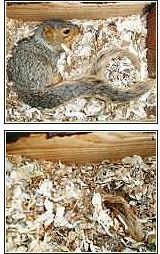Below is a photo of a squirrel discovered in an attic by The Wildlife Whisperer taken before and after it went into hiding.